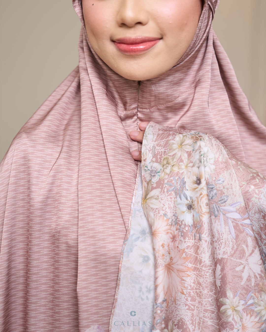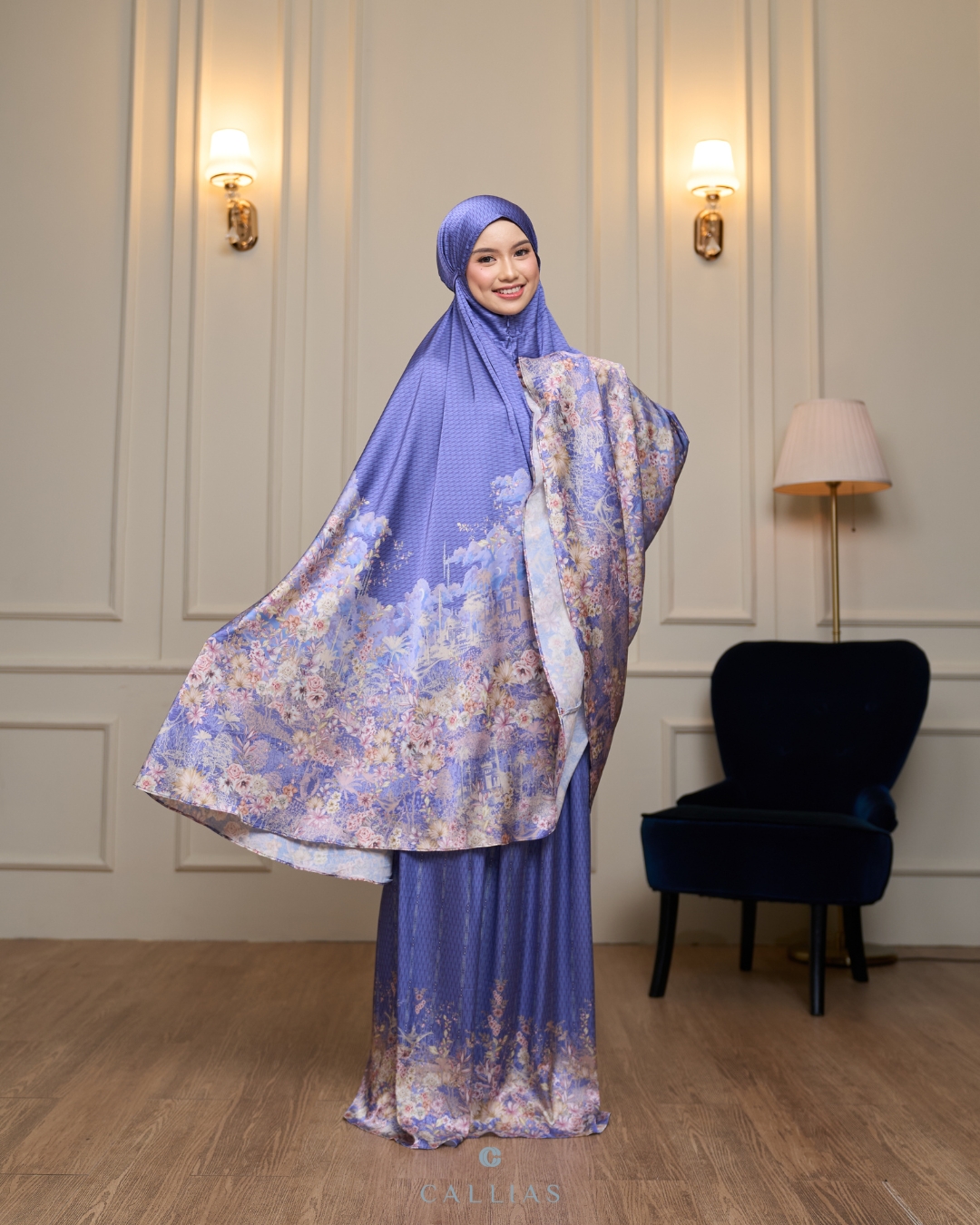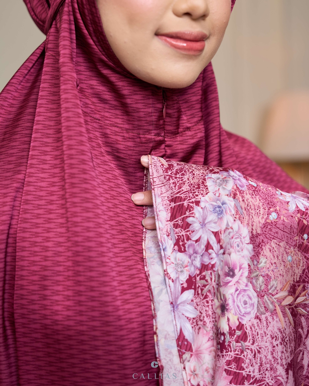 Prayer Set robe Callias menggunakan bahan Elenoir Silk yang berbahan ringan, lembut dan flowy. Menggunakan zipper di bagian dagu sehingga dapat dipakai dengan dua style berbeda.