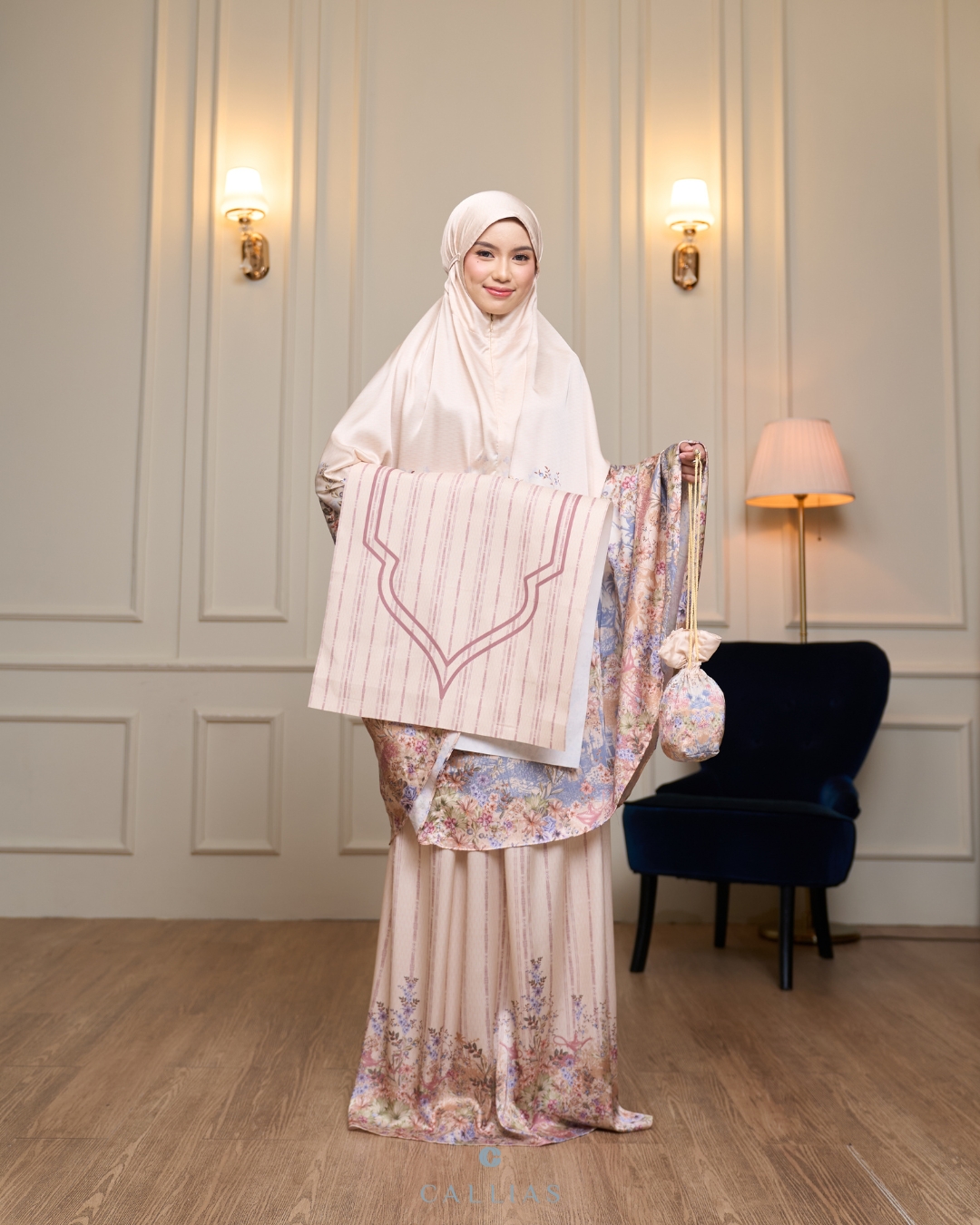 Prayer Set Callias dilengkapi dengan sajadah berbahan canvas premium serta dilengkapi dengan pouch yang cantik