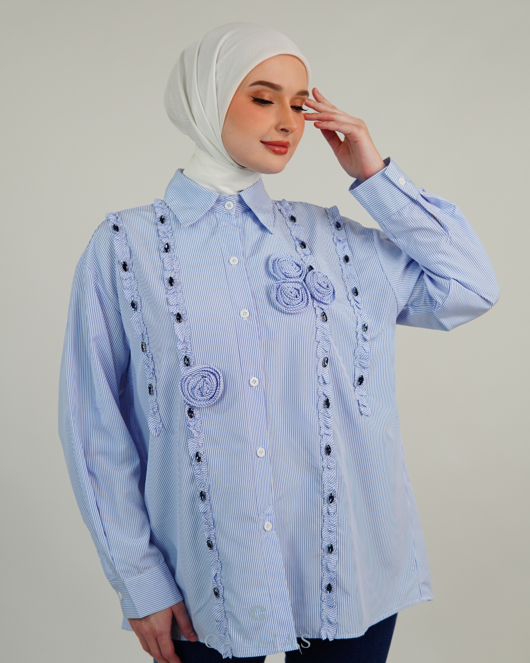 Koleksi terbaru dari Callias yang memadukan motif stripes klasik dengan sentuhan floral statement yang feminin dan modern. Dilengkapi dengan detail beads yang memberikan aksen berkilau halus, membuat tampilan terlihat lebih hidup dan eksklusif tanpa berlebihan.