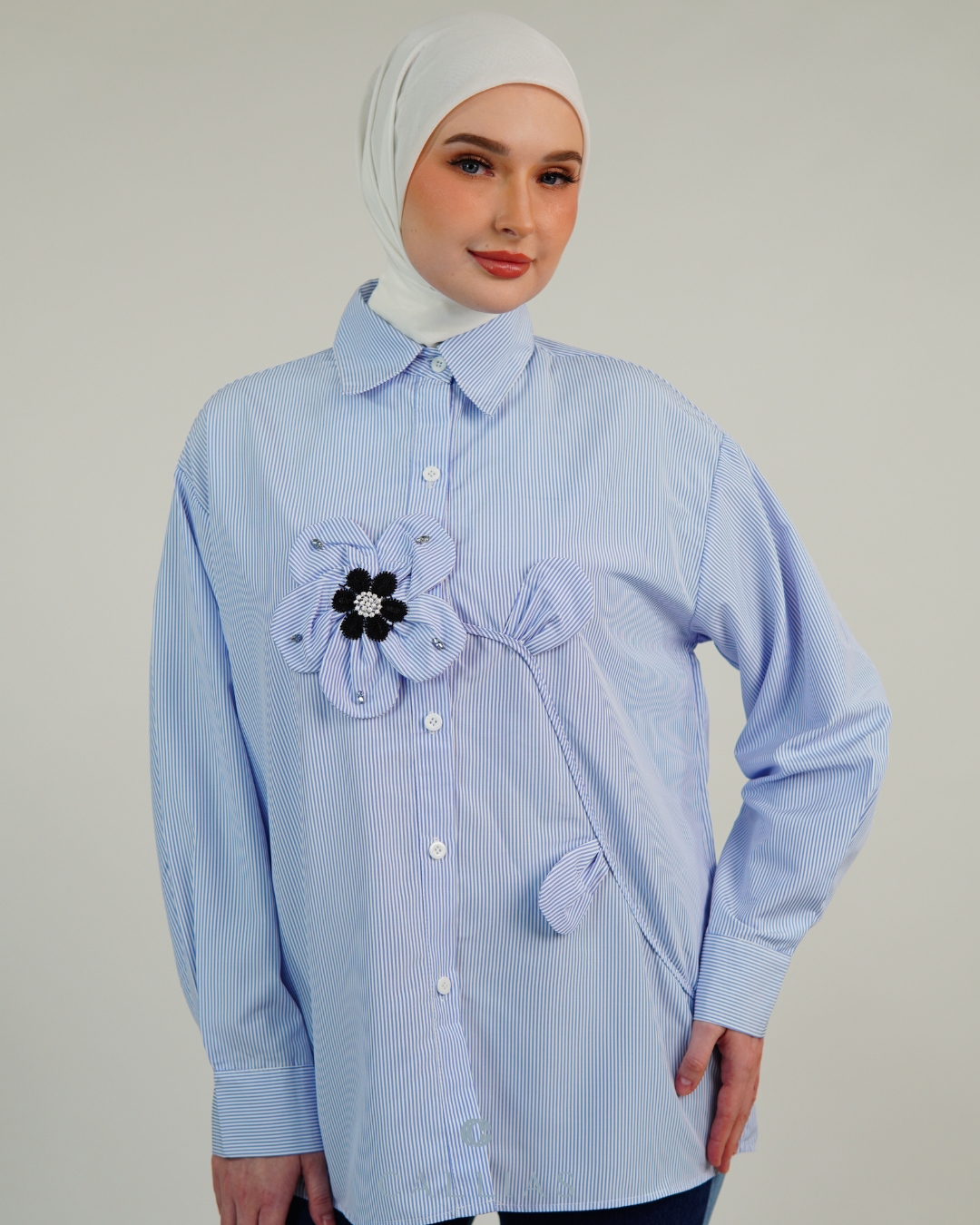 Aplikasi bunga yang unik dikombinasikan dengan penempatan beads yang rapi menjadi point pada setiap varian. Dibuat dari katun premium yang lembut, ringan, dan breathable, Bloom Stripes Series nyaman dikenakan sepanjang hari. Potongan loose fit memberikan siluet yang effortless dan flattering untuk berbagai bentuk tubuh.